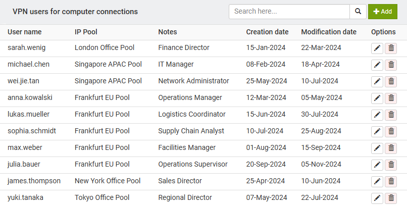 VPN Users. Ovaa stranica sodrzhi dve glavni sekcii: IP opsezi i korisnichki smetki. Pred da kreirate VPN korisnici, mora da konfigurirate najmalku eden IP opseg.